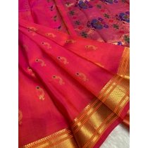 Pink & Orange Pure Silk Paithani Saree with Golden Zari and Peacock Pallu ₹17,500