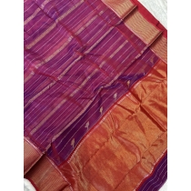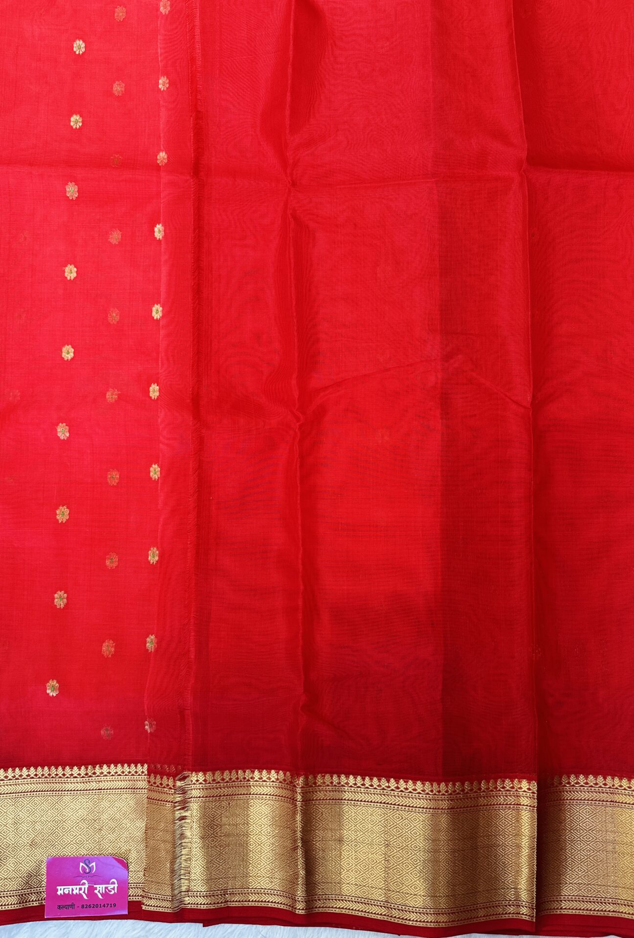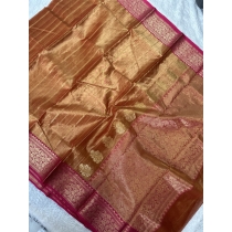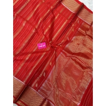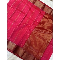 Peach & Pink Chanderi Silk Saree with Intricate Red Zari Border