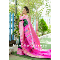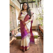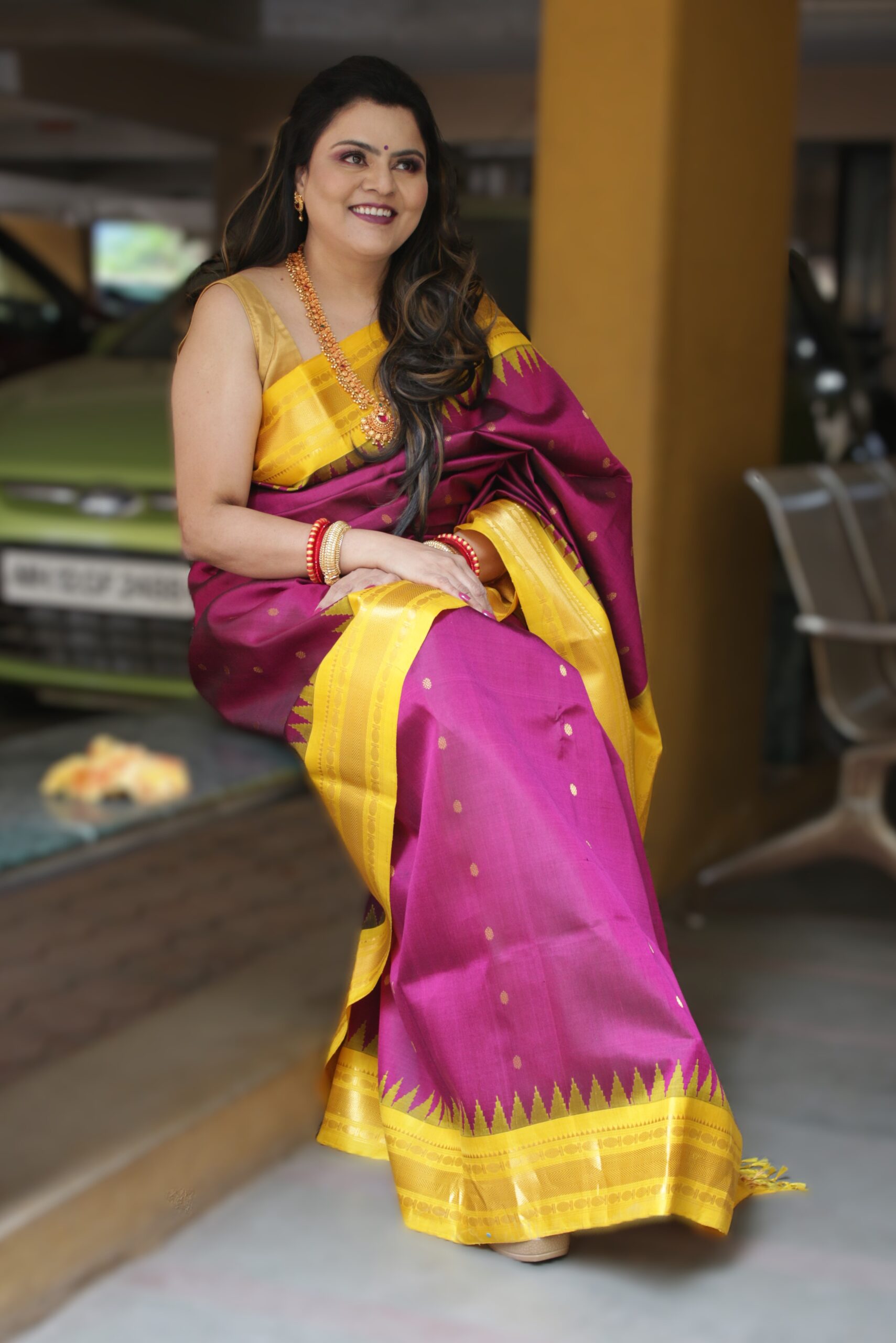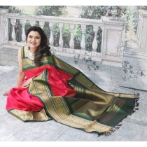 This saree is crafted on handlooms using pure silk and is a true representation of traditional South Indian textile heritage.