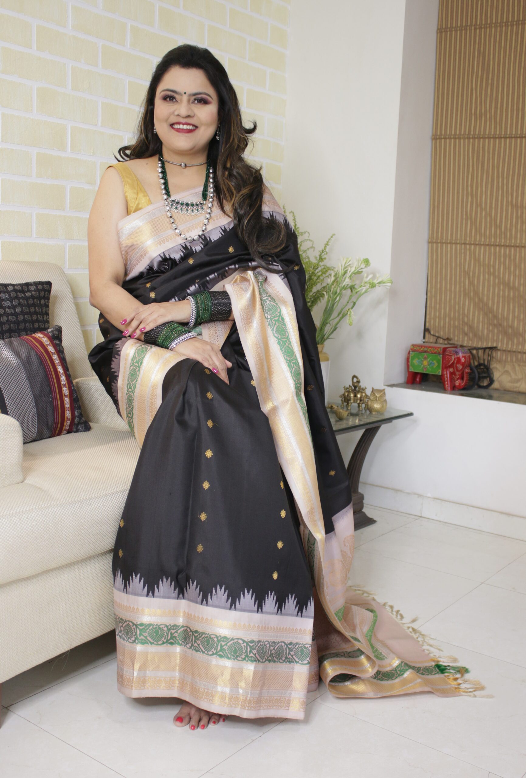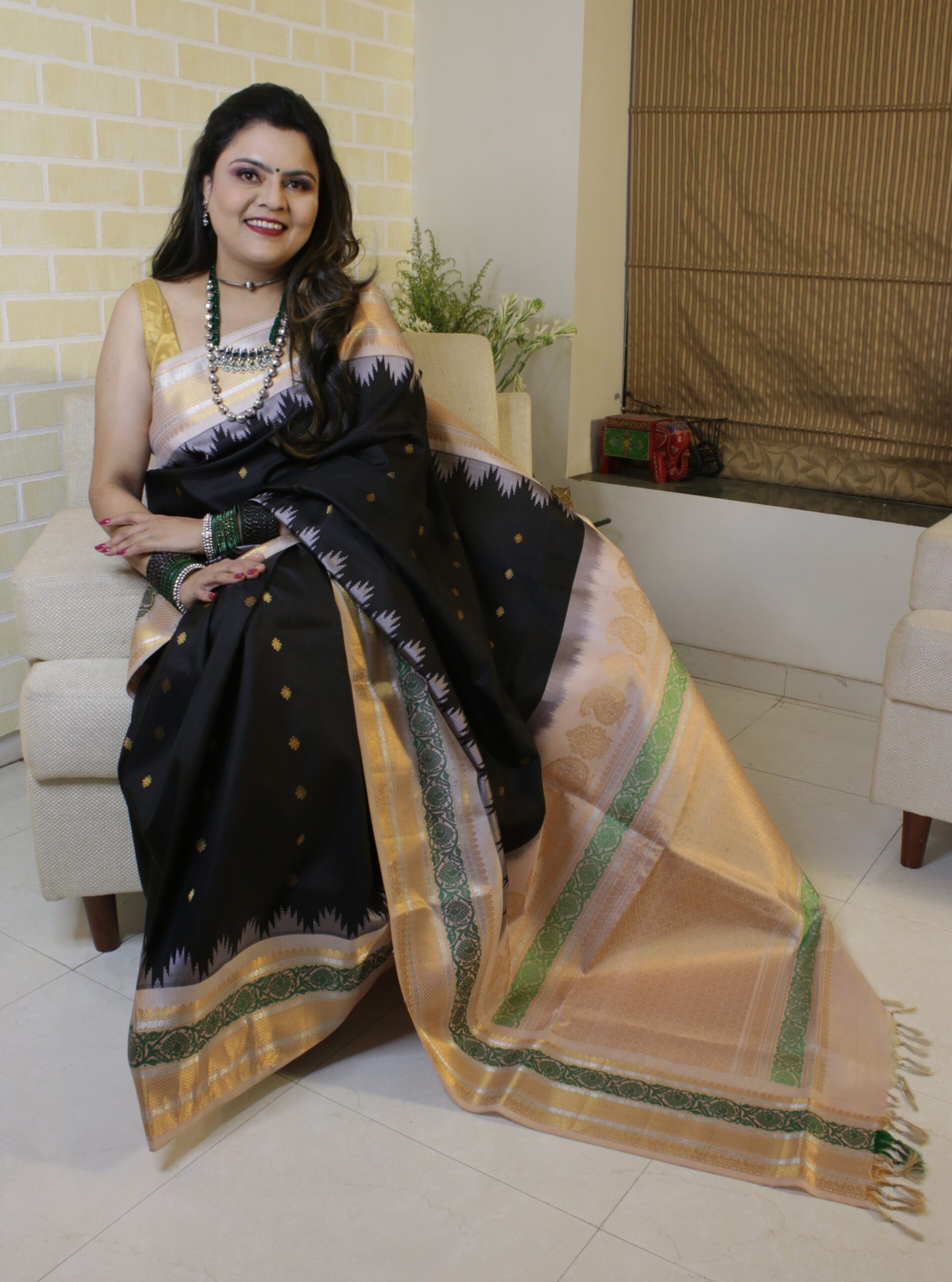 Only a handful of weavers master this technique today, making each saree a collector’s treasure. Popular for ceremonies where auspiciousness is emphasized — worn during Mahurats, Grihapravesh, and Traditional Weddings.