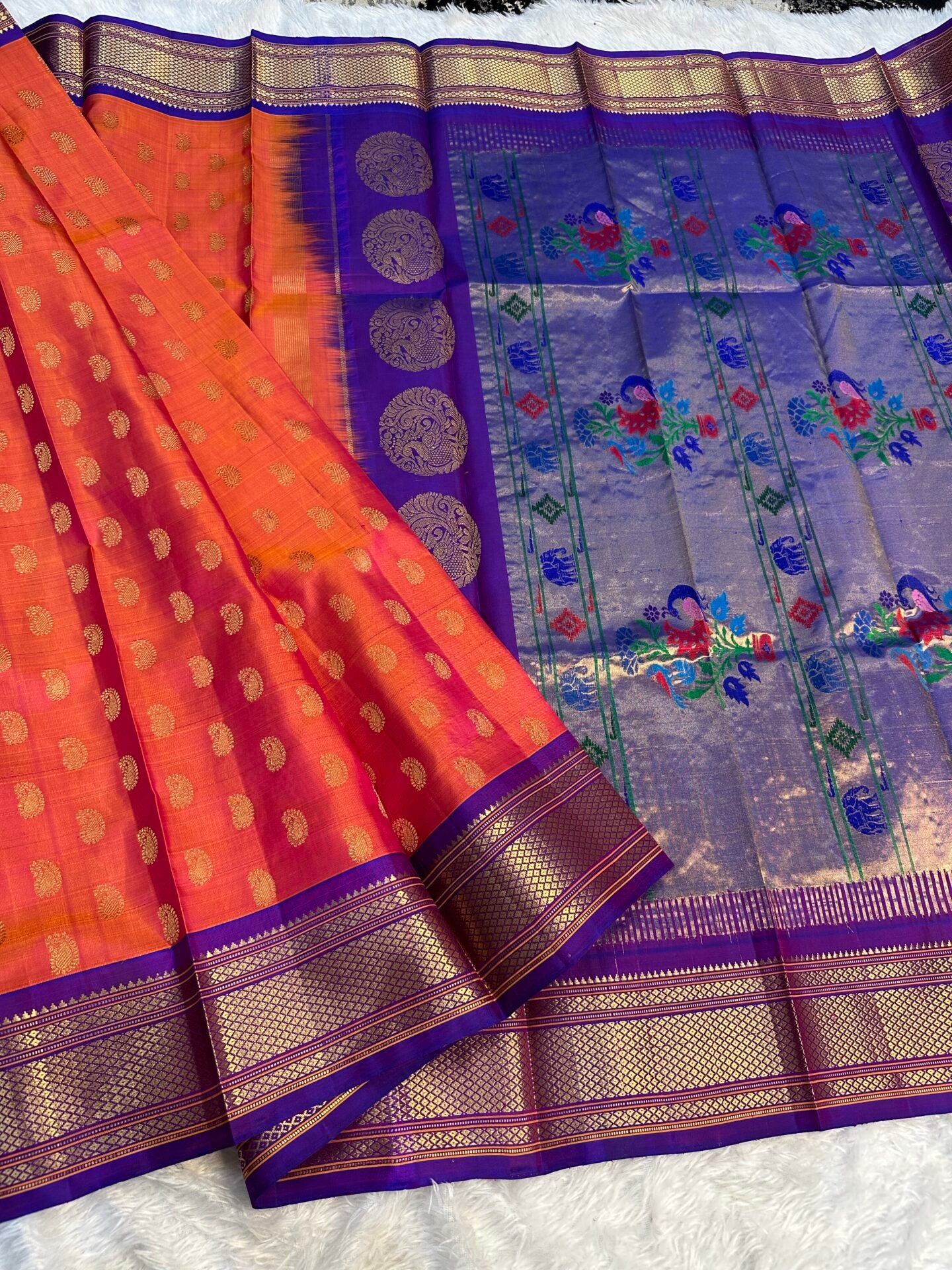 This is a South-made Paithani saree, crafted in South India and popularly known as Kalanjali Paithani.