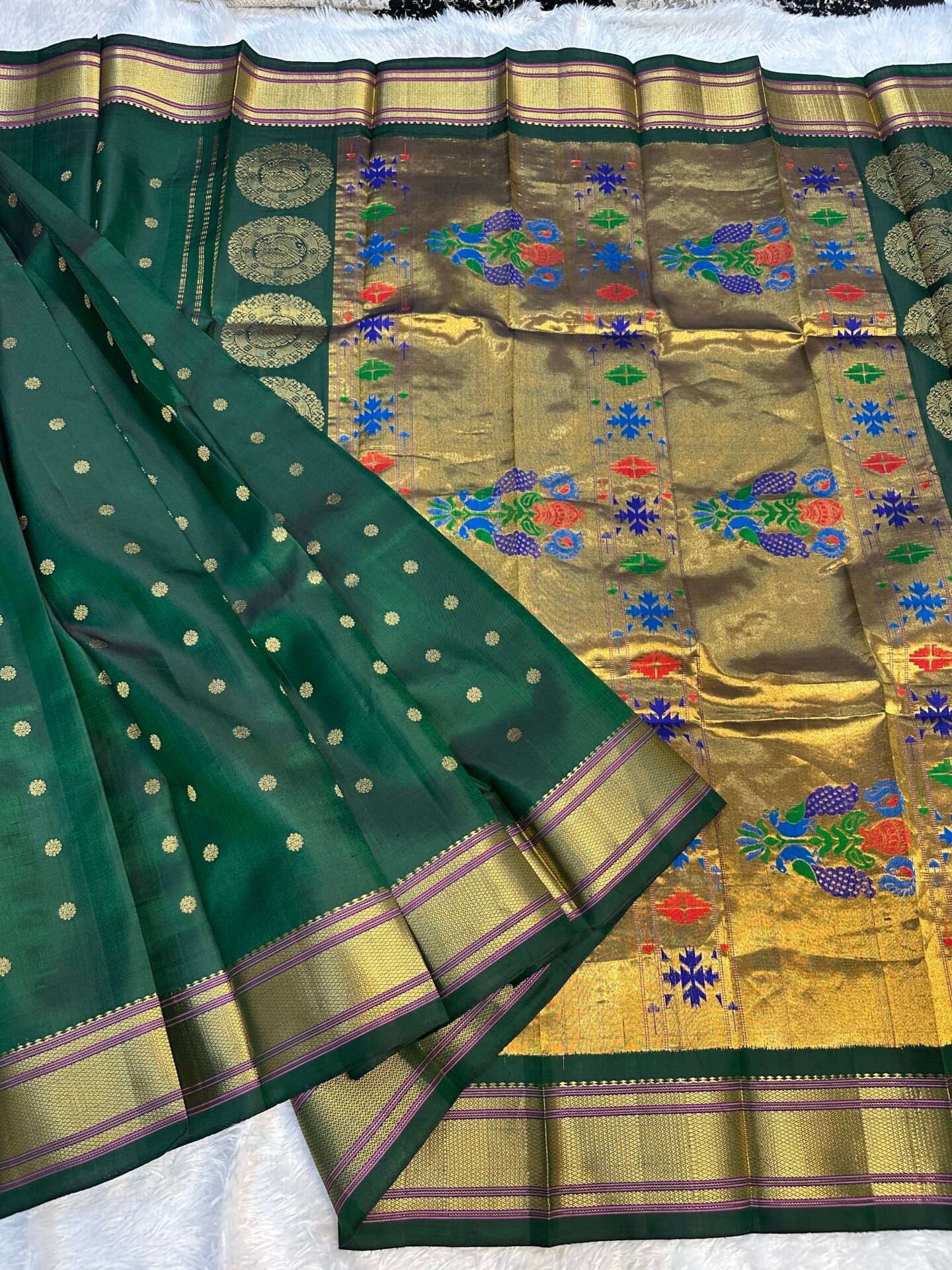 This is a South-made Paithani saree, crafted in South India and popularly known as Kalanjali Paithani.