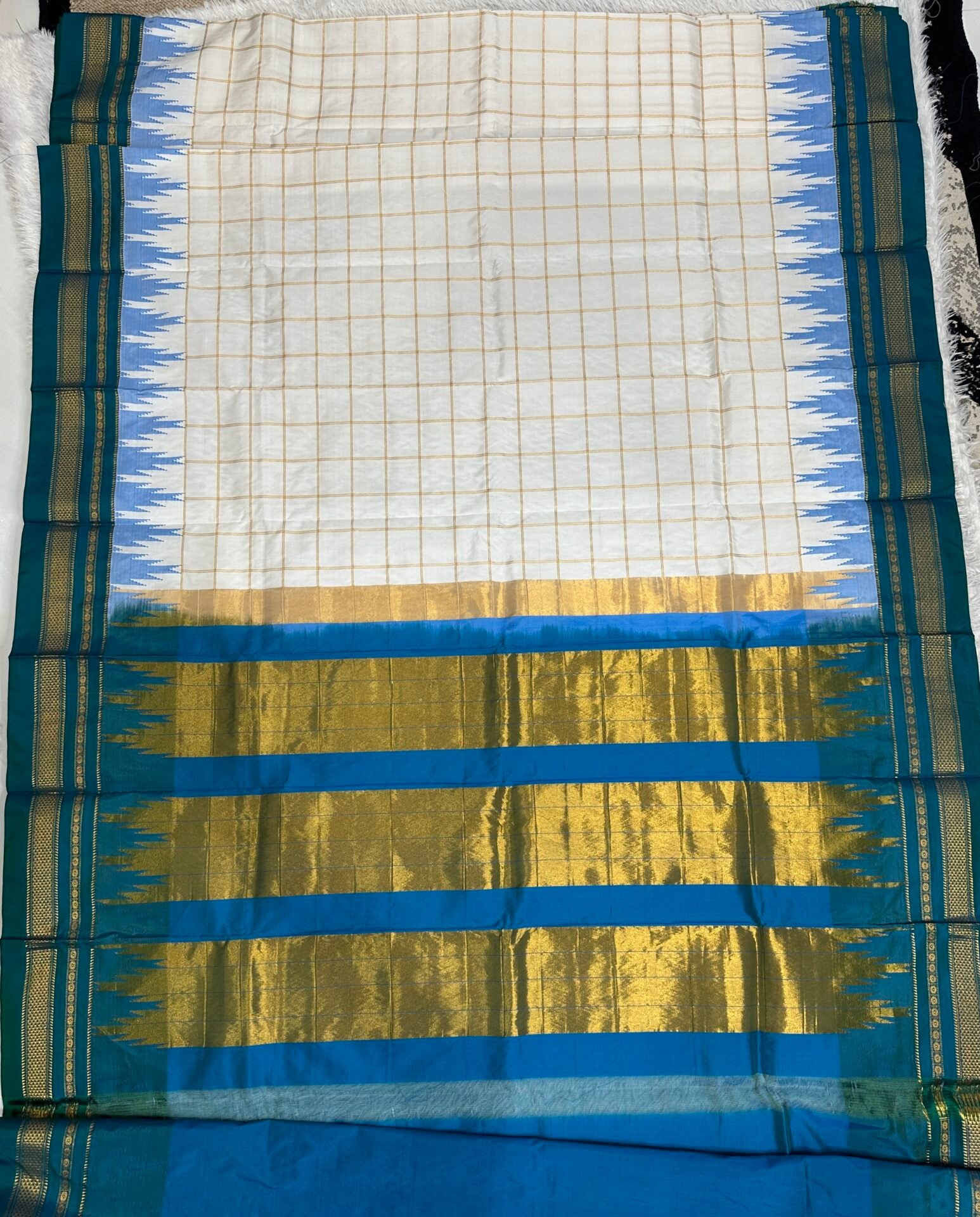This is a semi-Ilkal saree. It contains 15% silk thread and 85% cotton silk threads.