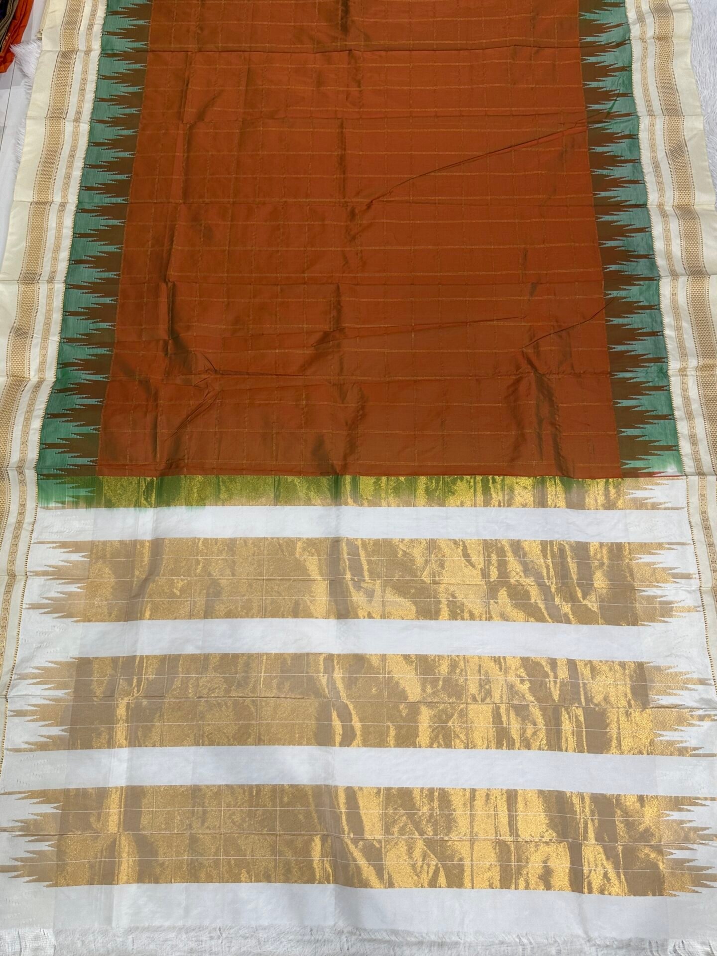 This is a semi-Ilkal saree. It contains 15% silk thread and 85% cotton silk threads.